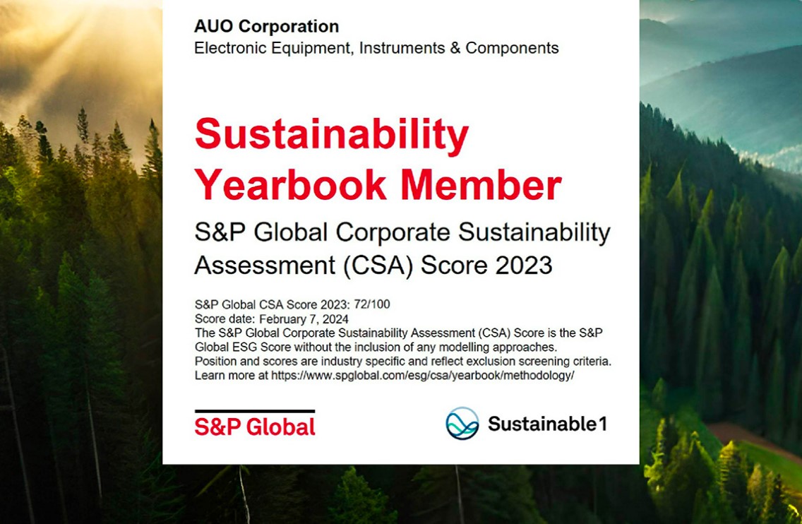 AUO Corporation has been included in the 2024 S&P Global Sustainability Yearbook
