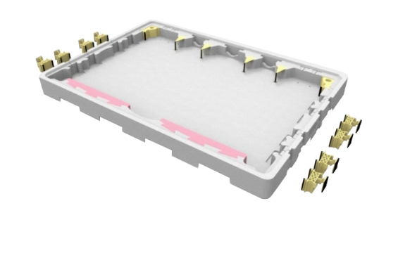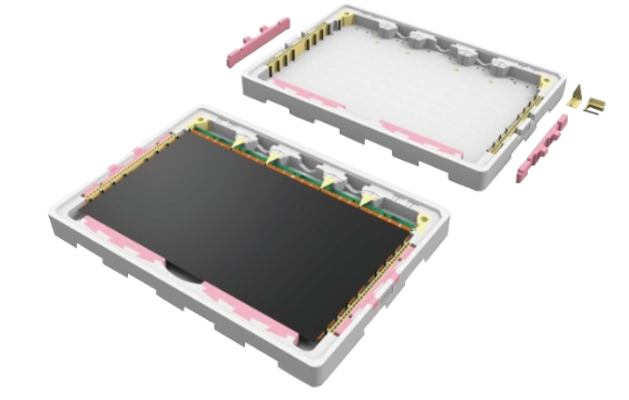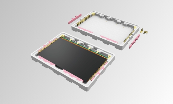 The increasing variety of products in the market requires display panels to be cut in many different shapes and sizes. Meanwhile, shortened product life cycles are making customized packaging materials fall obsolete at a faster rate, particularly for glass substrate. Packaging boxes for discontinued glass substrate are left to occupy large inventory space, while packaging materials for new models are added each year. As a result, unused packaging materials start to build up in the warehouse. Safety and interchangeability have always been two important issues in industrial packaging, and the new "adjustable cushion" design was made specifically to address this problem.